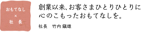創業以来かわらぬ思いでお客様に接しております。「心をこめて」を